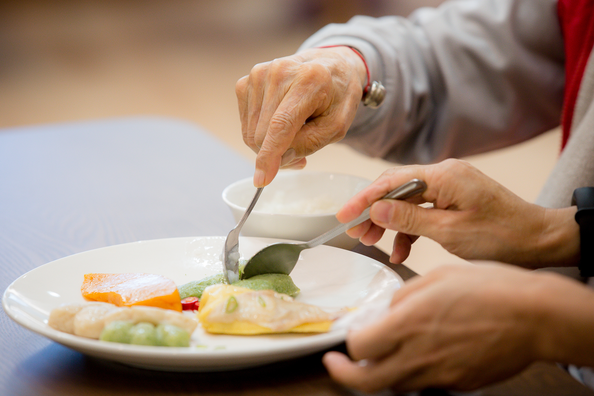 營養師評估長者生理所需,擬定適合每位長者的飲食計畫,以增進營養吸收補充與慢性病症的穩定與控制。並依住民咀嚼能力的不同,給予不同的飲食備置服務。