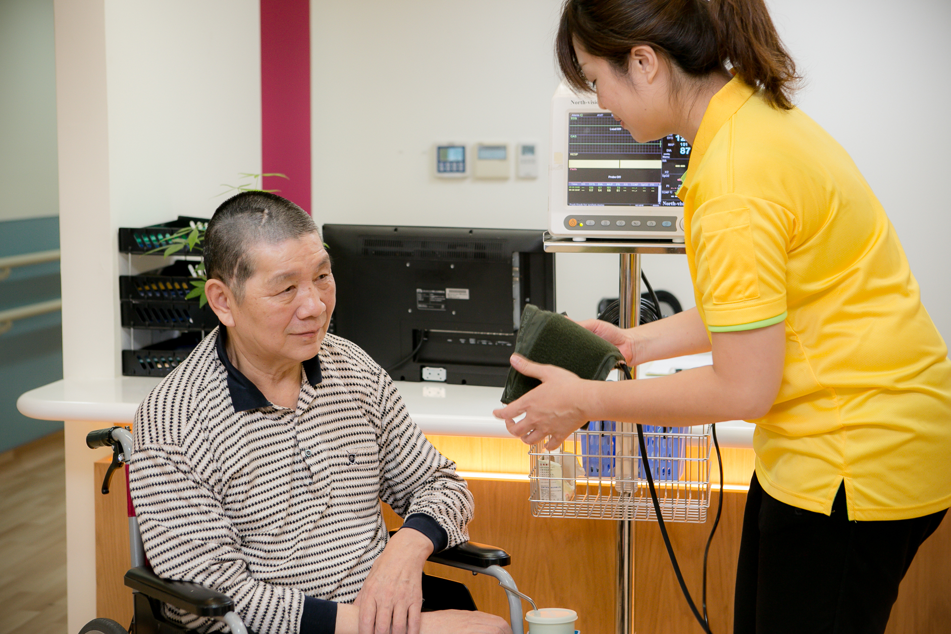 護理師,執行護理專業技術,全天候掌握長者的健康狀況: